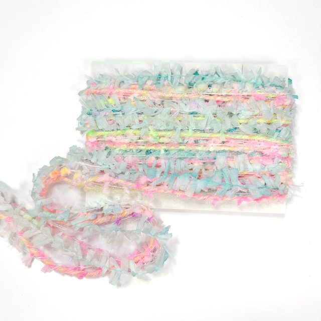 引き揃え糸 5m カード巻 通常玉巻き販売しているものを、カード巻にしております。5m販売です。 パステルでカラフル♡春カラーをお探しの方は是非❁⃘*.゚ 金額 ¥490 送料 ¥200(クリックポスト+梱包代) 〈 注意事項 〉 異素材の糸を5-6本で引き揃えています。素材により伸び縮みがありますので多少のたるみや長さの違いがございます。 手染め商品です。色止め処理等行っておりますが、擦れや水濡れ 等により色褪せや色移りの可能性が御座います。お取扱いには十分ご注意下さい。 写真と実物のお色味が若干異なる場合が御座います。ご了承下さい。