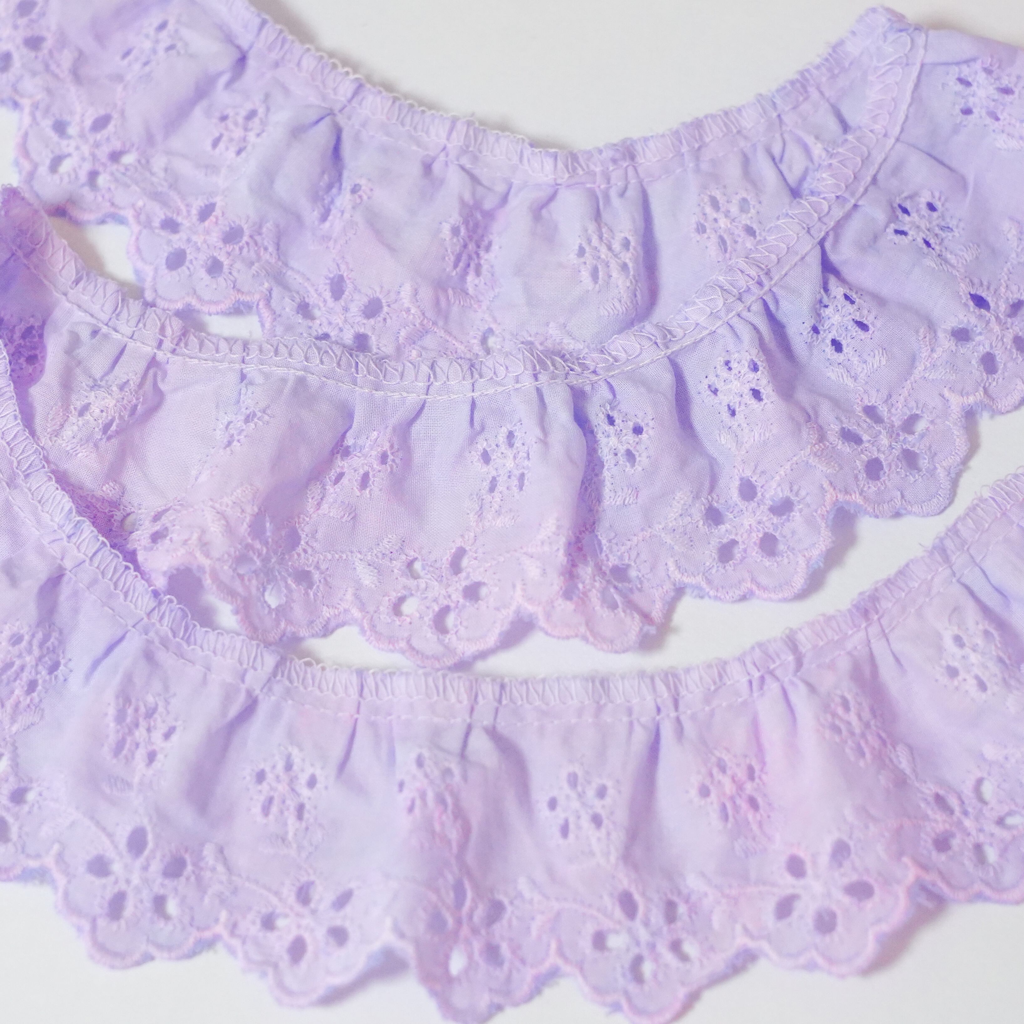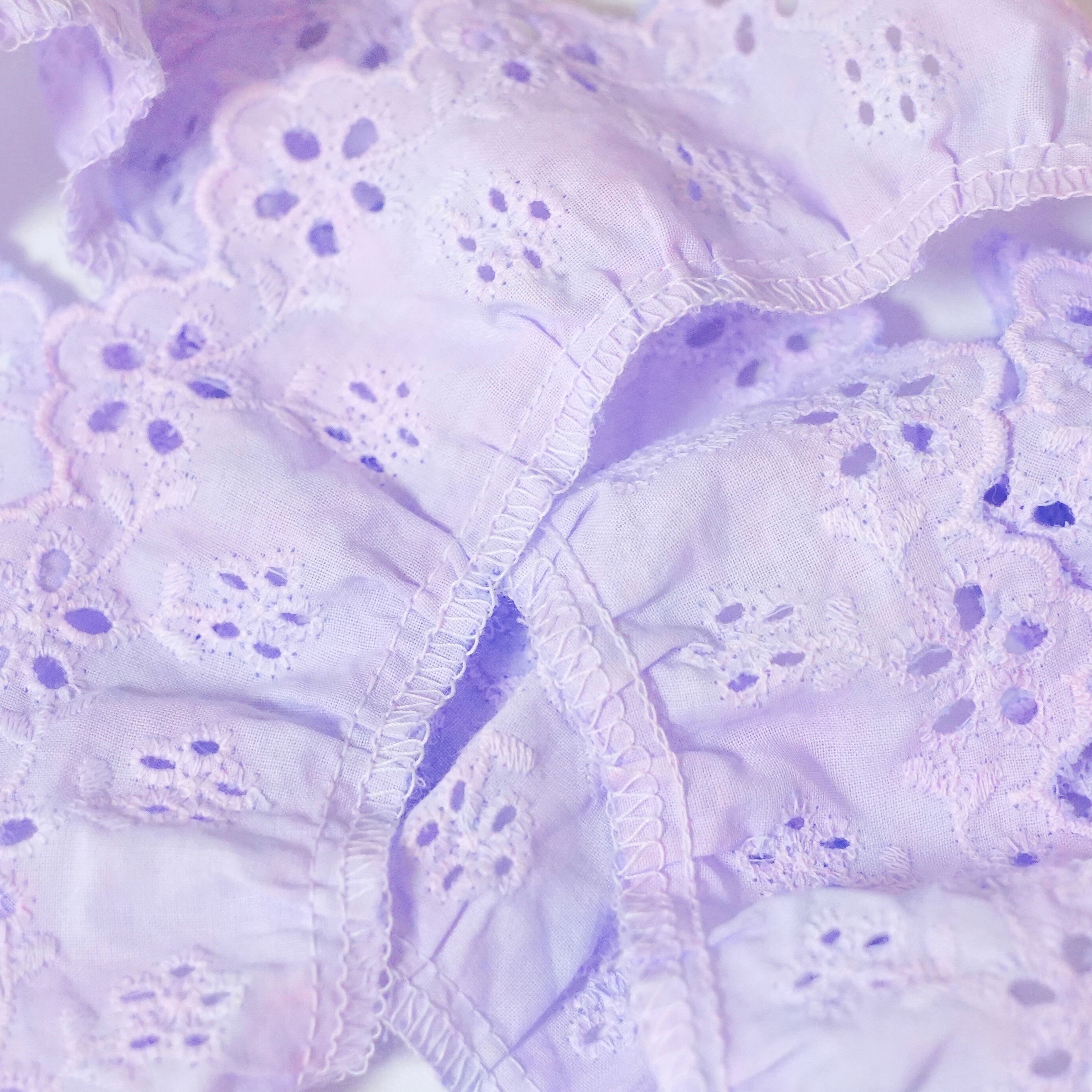 手染めレース 1m スカラップ 綿 花柄 ブルー パープル