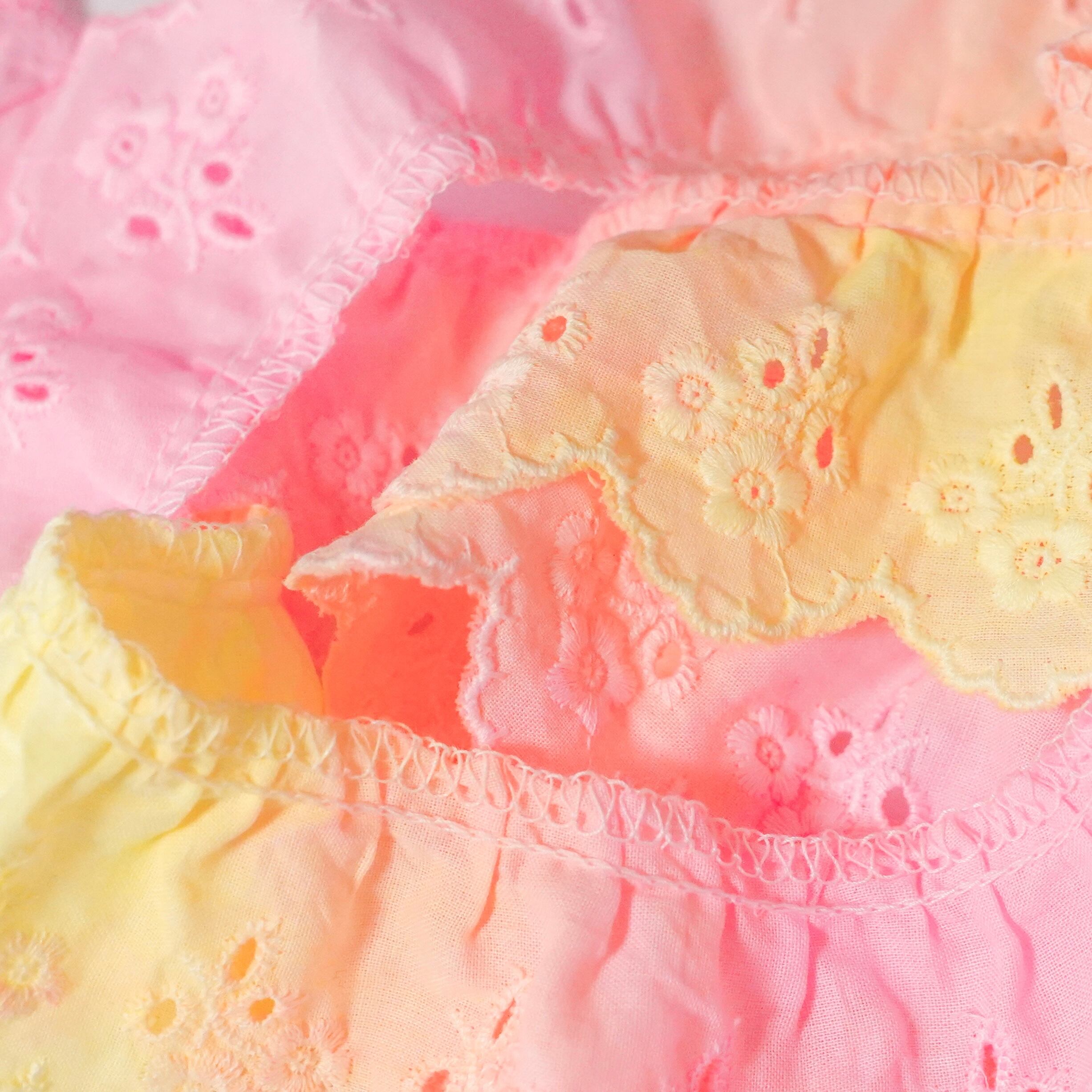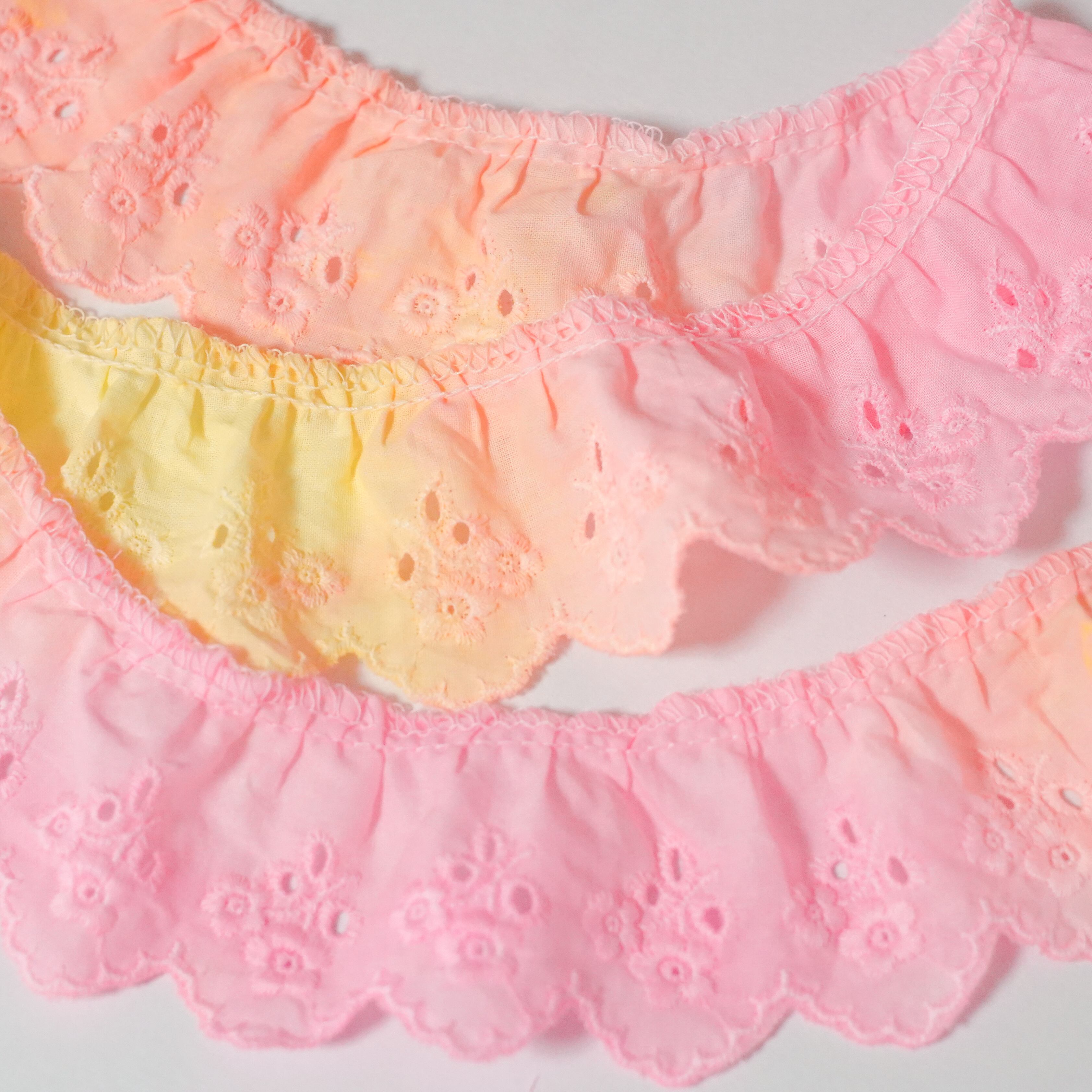 手染めレース 1m スカラップ 綿 花柄 ピンク オレンジ イエロー