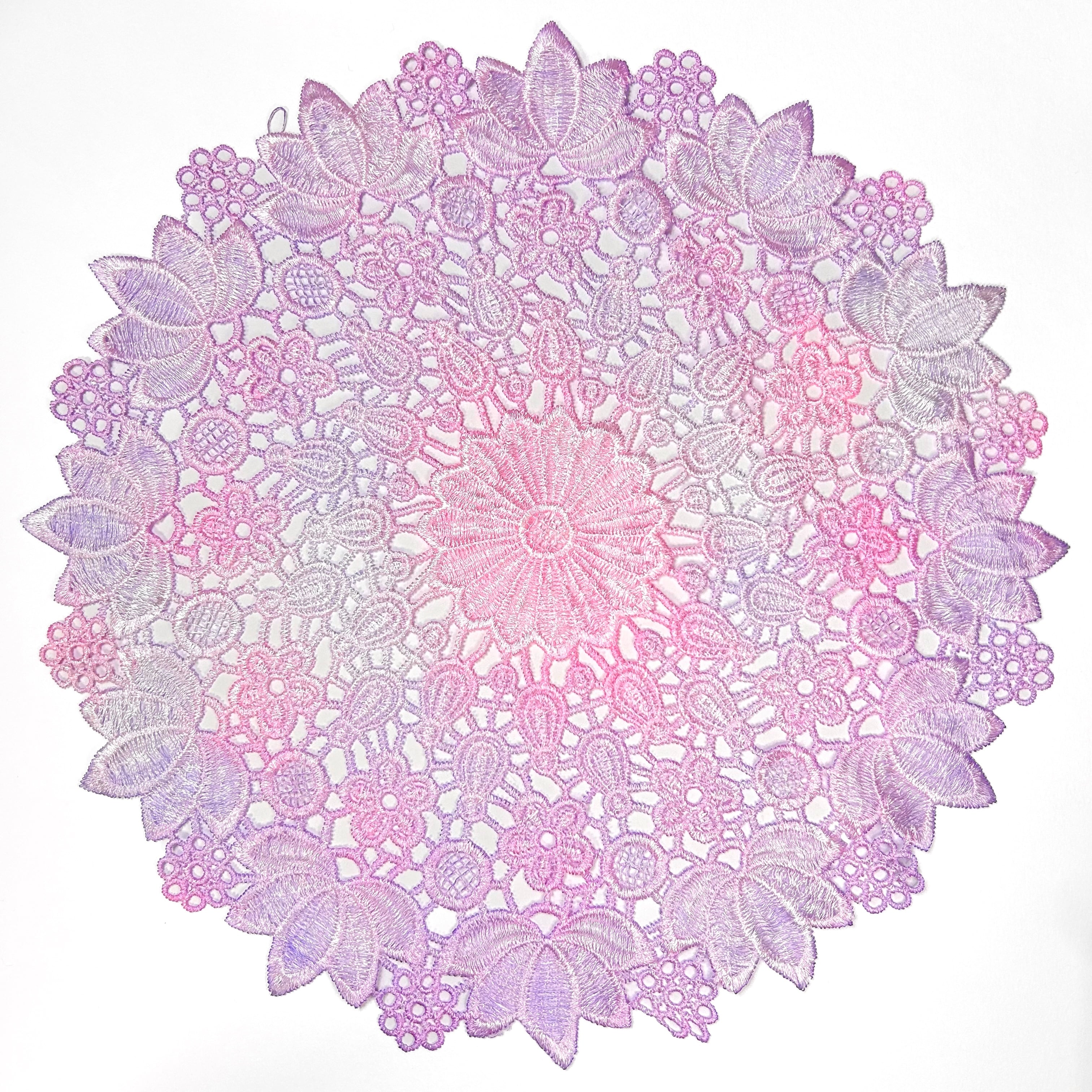 手染めレースクロス 34cm 花柄 ピンク パープル