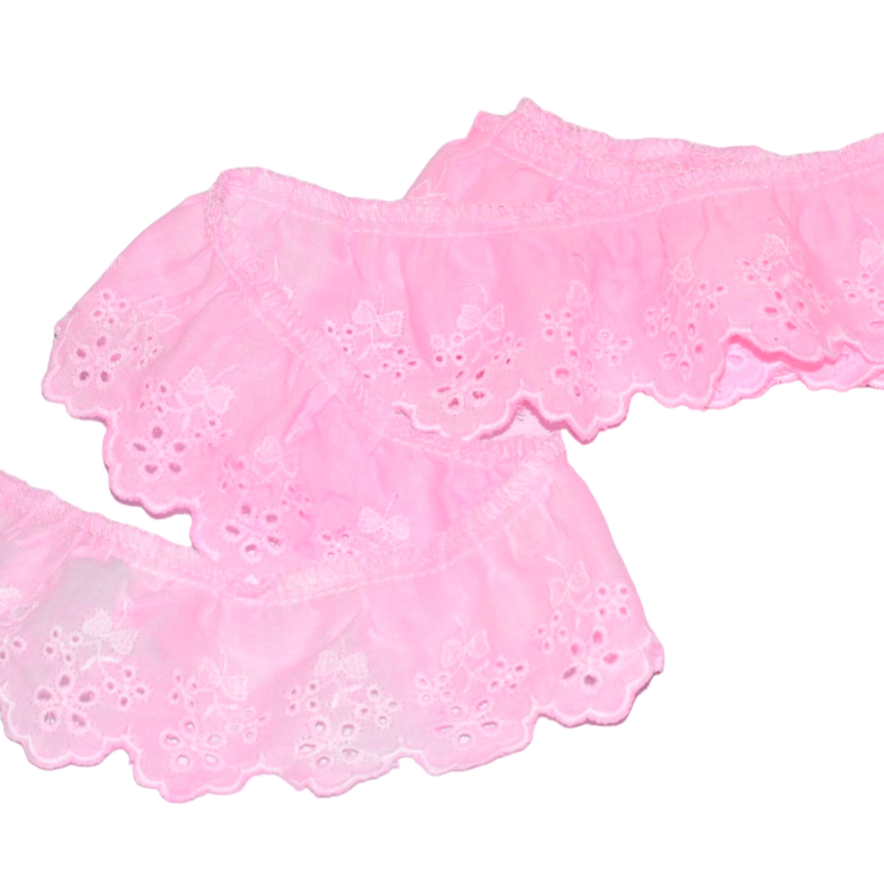 手染めフリルレース 綿 1.6m ピンク お花