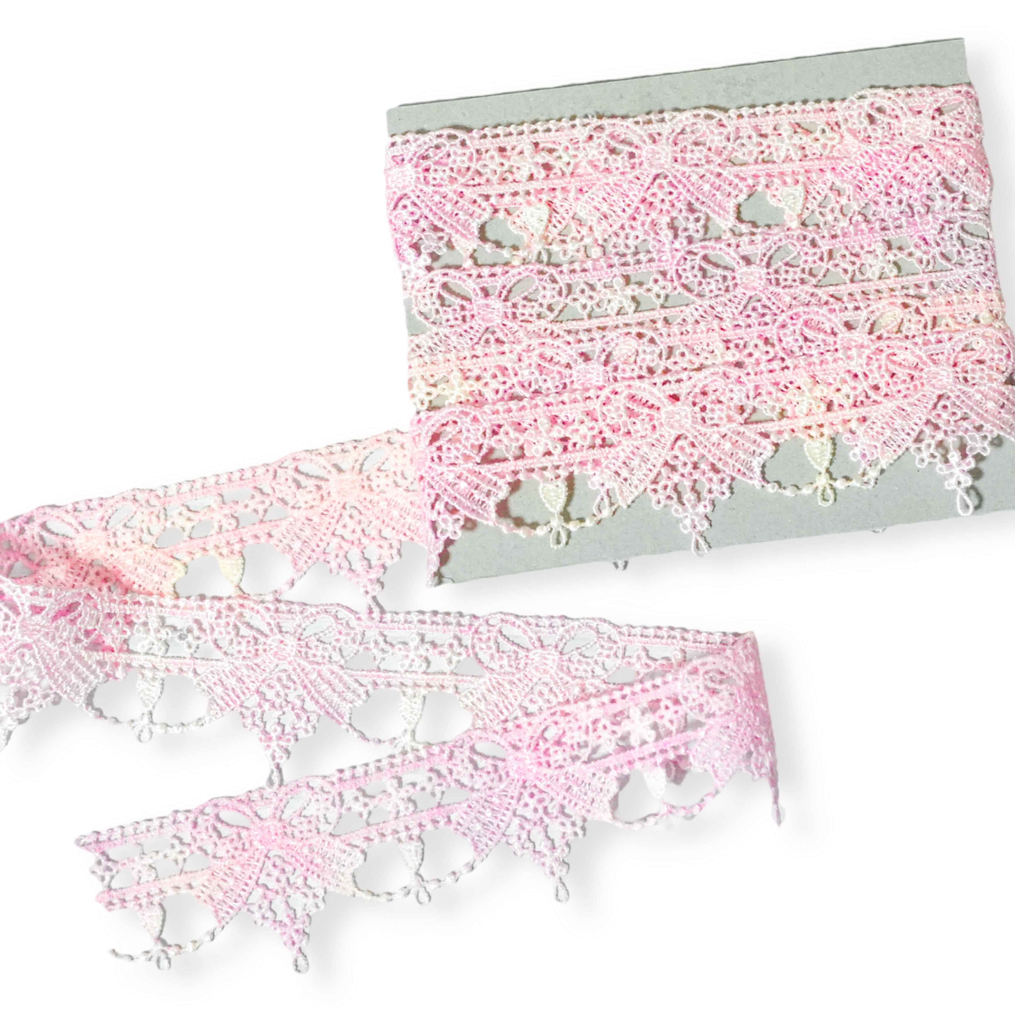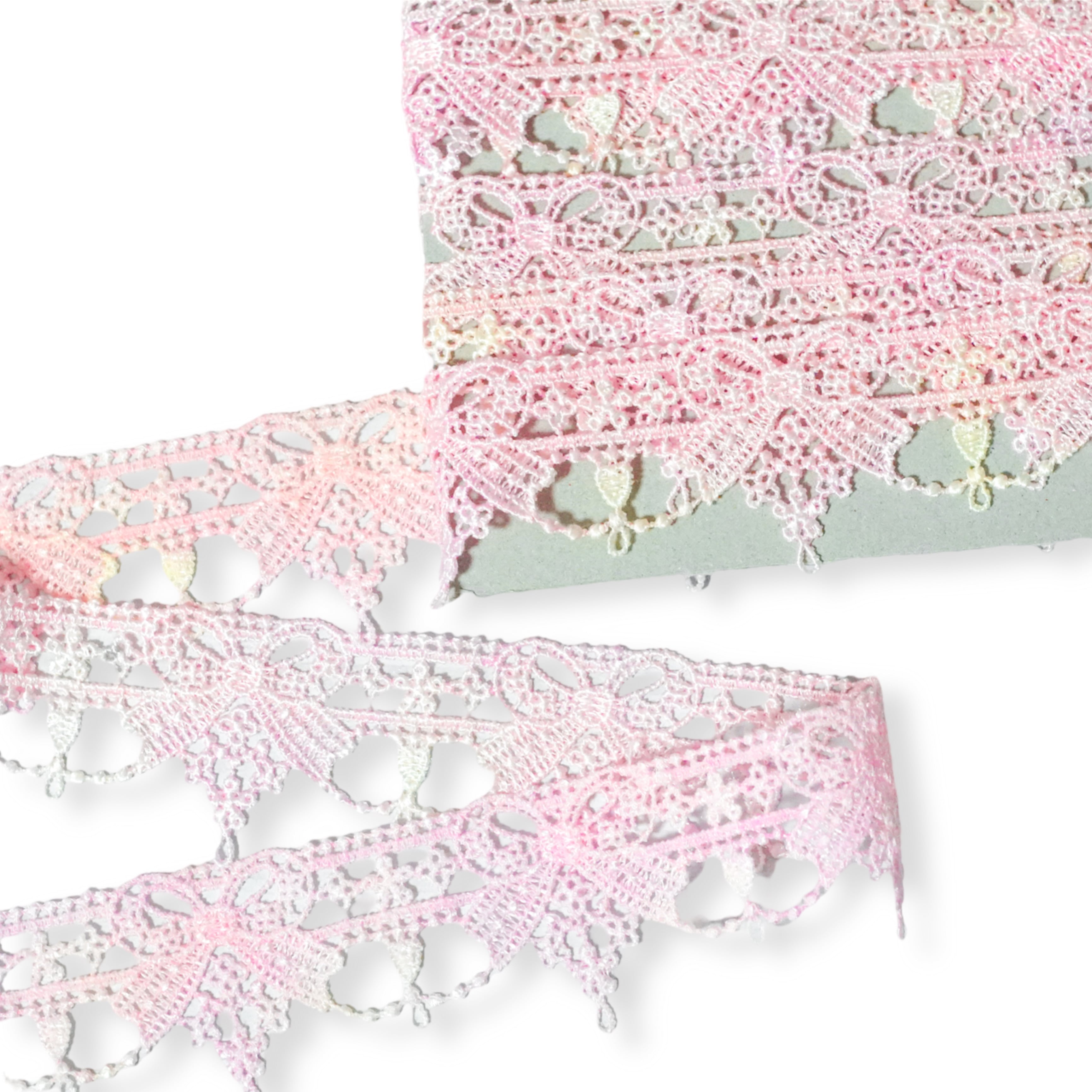 手染めレース m販売 リボン刺繍 ピンク イエロー パステル