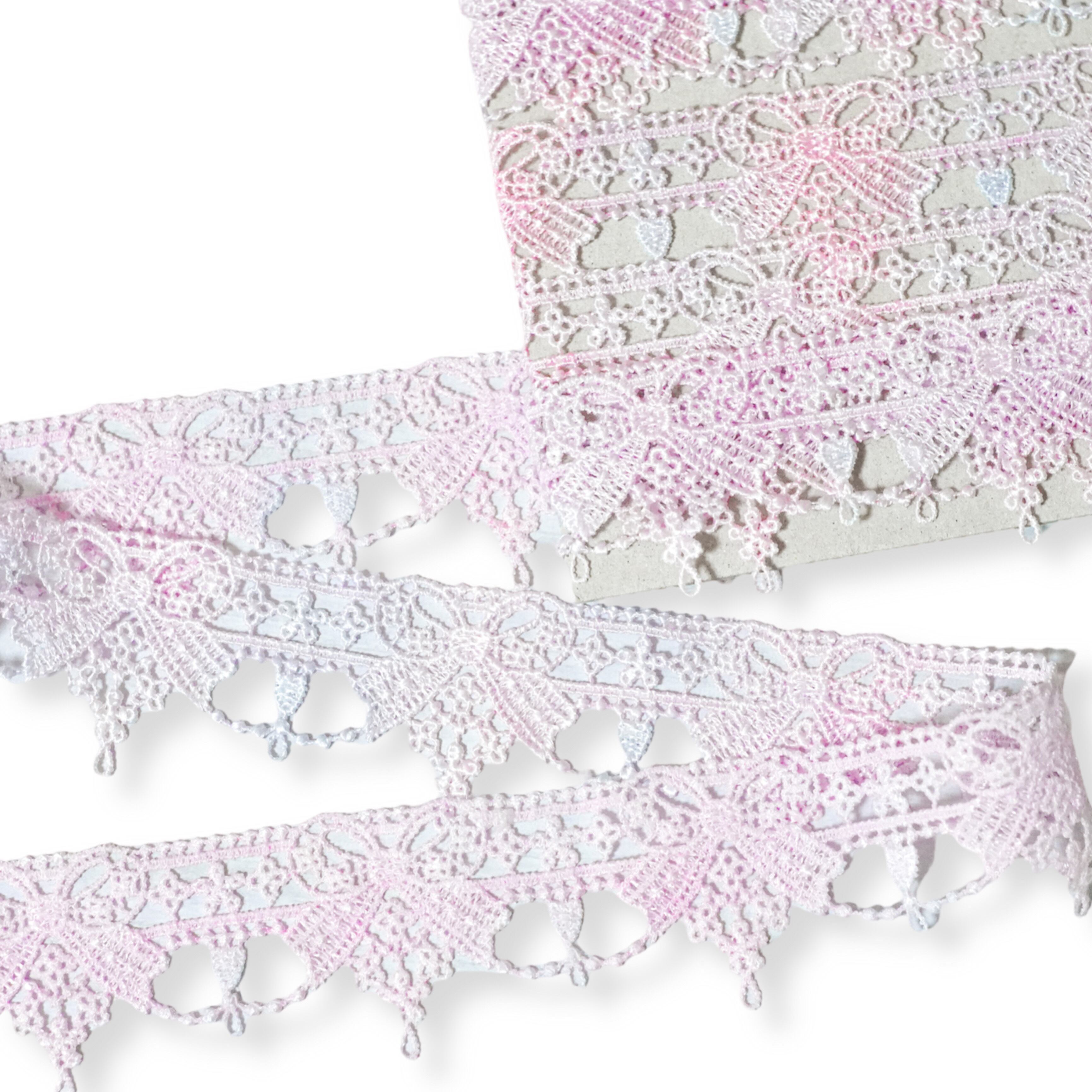 手染めレース m販売 リボン 刺繍 ピンク パープル ブルー