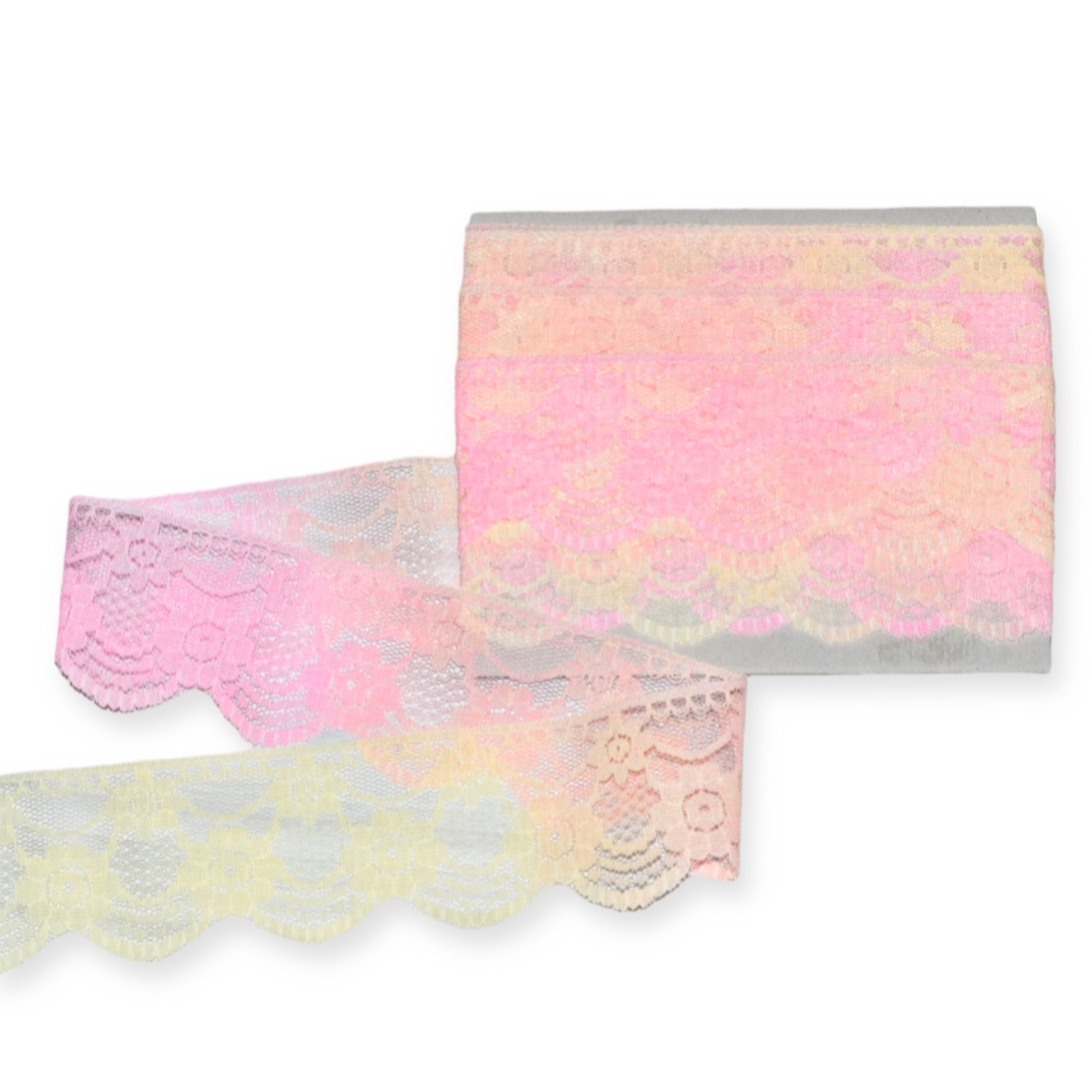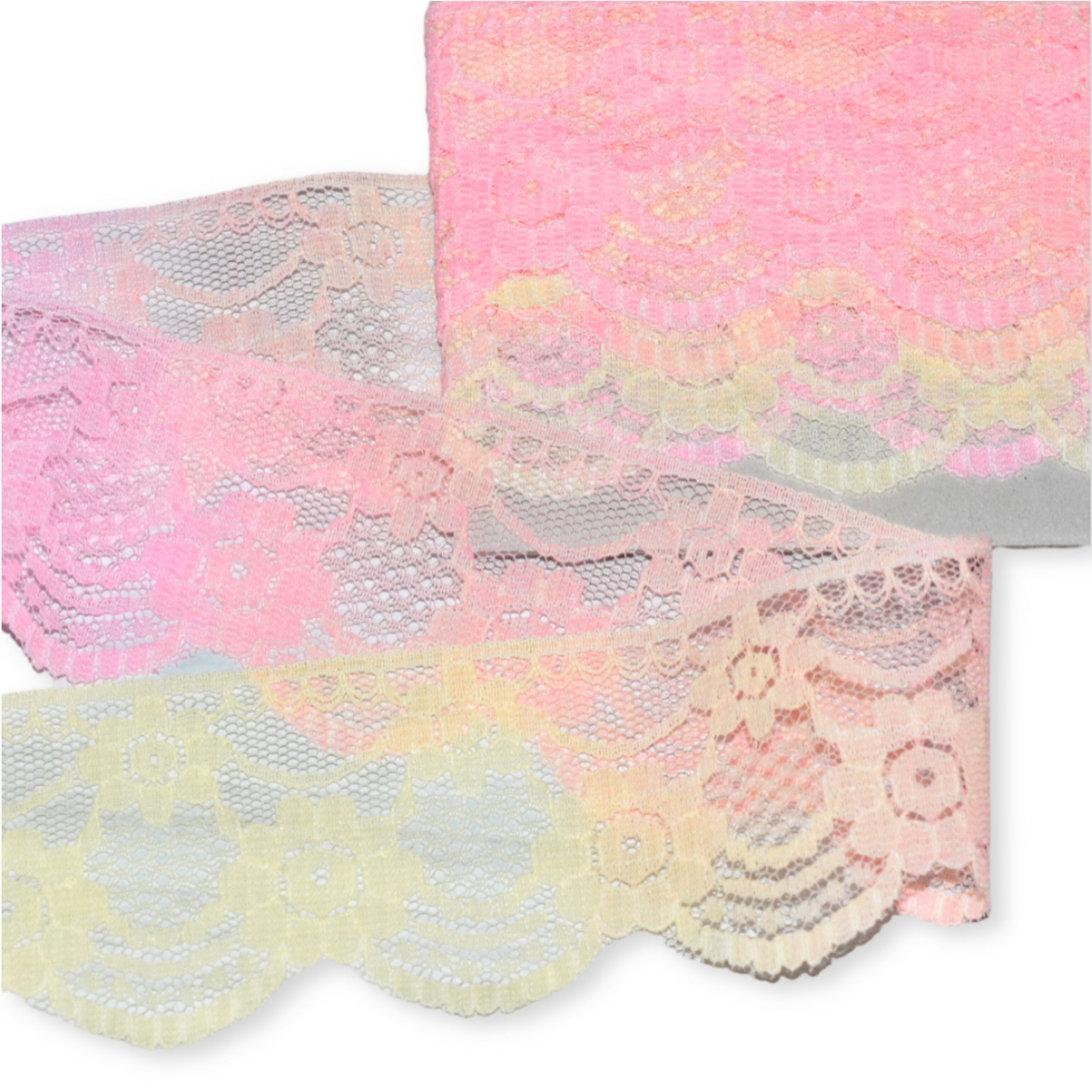 手染めレース ラッセルレース m販売 ピンク オレンジ イエロー 花