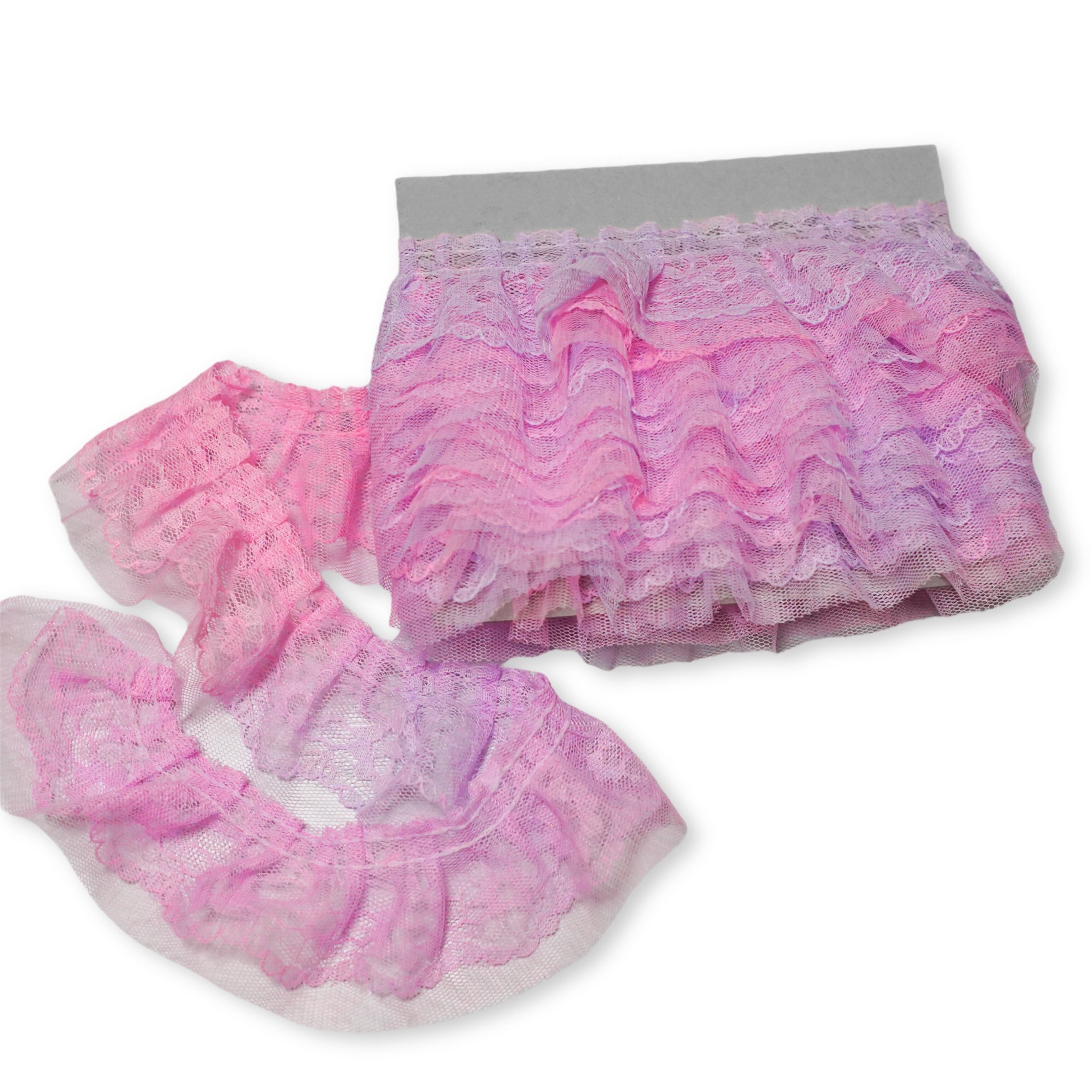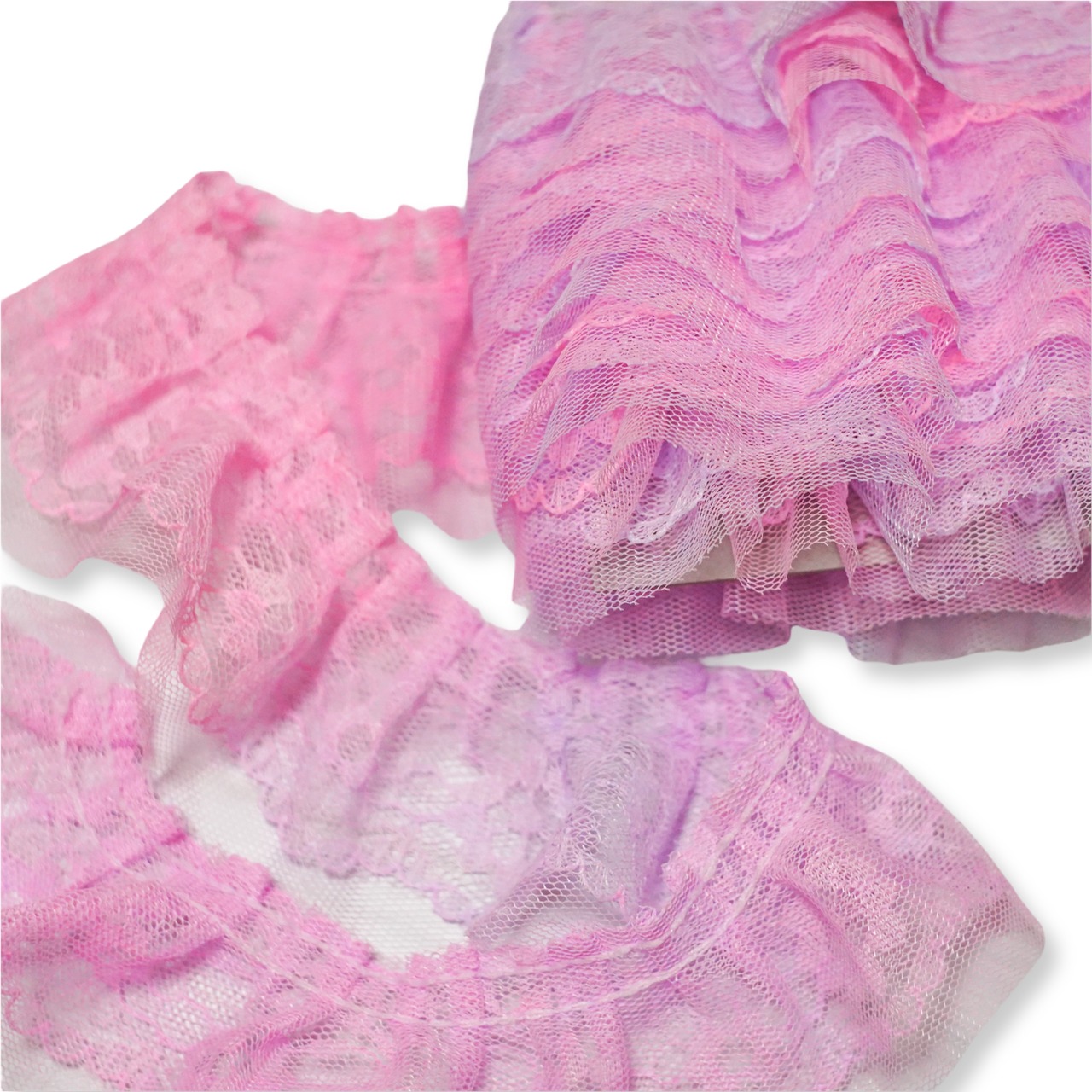 手染めレース 2重フリルレース m販売 ピンク パープル